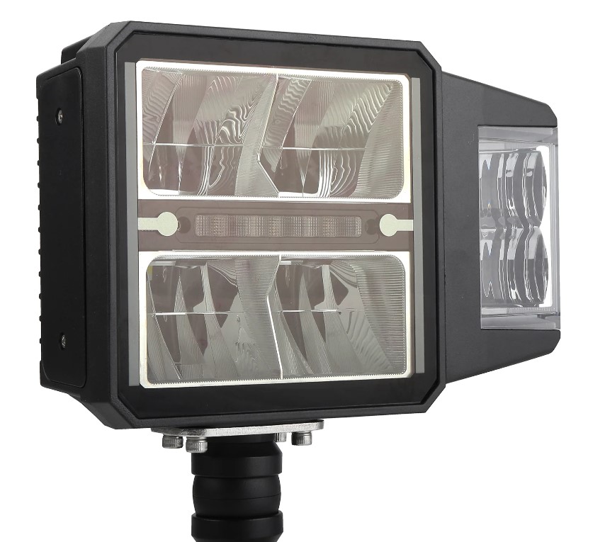 BriodLights Kombistrålkastare/ploglampa LED med halvljus, helljus och parkeringsljus med värme i glaset. (Automatiskt värmeelement som slår på vid 4 grader C°). Levereras med blinkers som kan fästas på sidorna eller upptill på lampan. Levereras med en 6-polig DT-kontakt på baksidan. Strålkastaren är designad för både höger och vänster sida. Mått: 215 mm med blinkers, höjd till fäste 176 mm. Halvljus 1800LM, 163 m 1 Lux. Helljus 3600LM, 280 m 1 Lux.